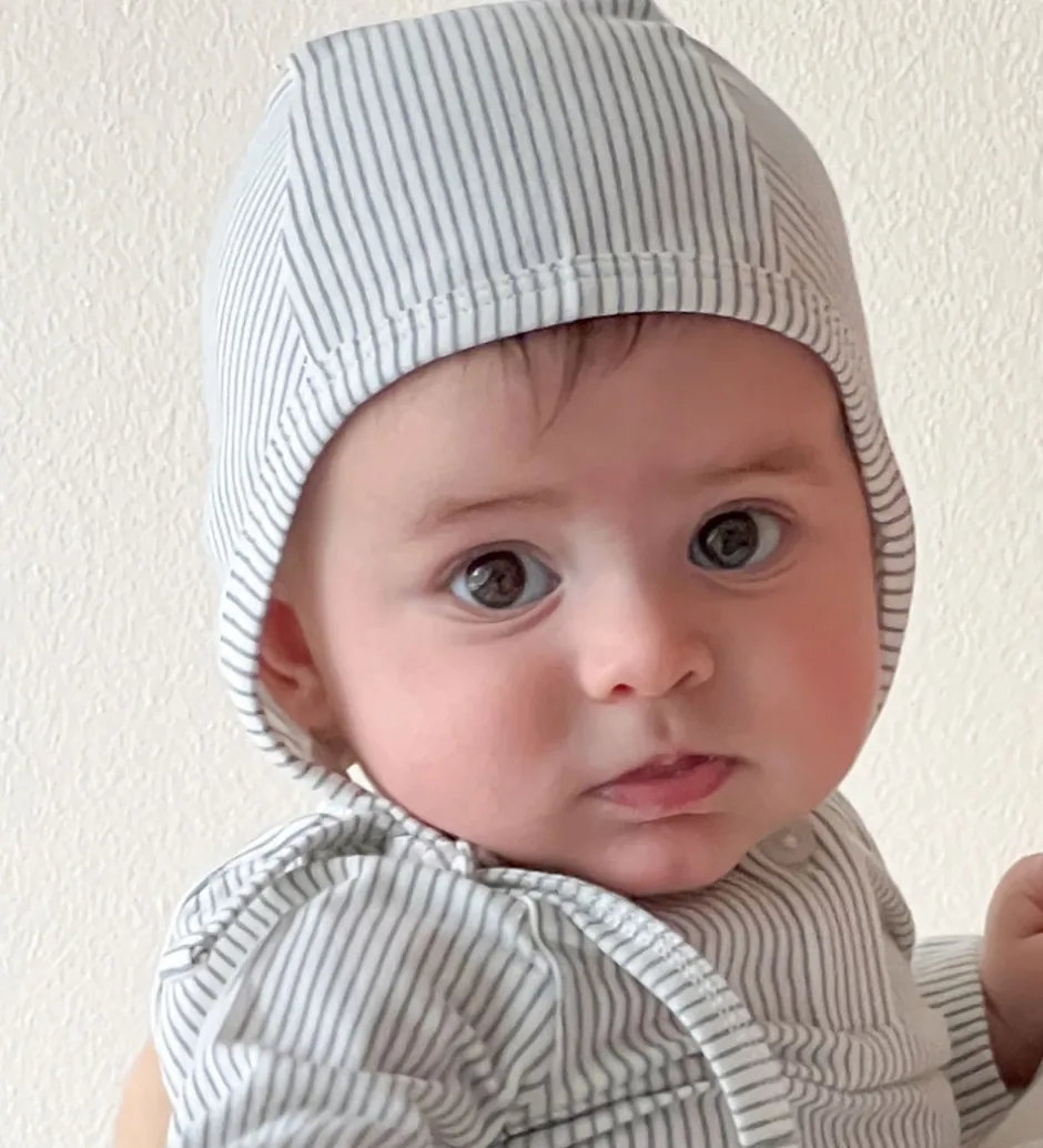 Cam Cam Copenhagen babyhjelmen har en rund pasform, der sidder tæt omkring barnets hoved og beskytter mod vind og kulde. Babyhjelmen er designet med en ribkant langs kanten og praktiske bindebånd, som bindes under hagen.