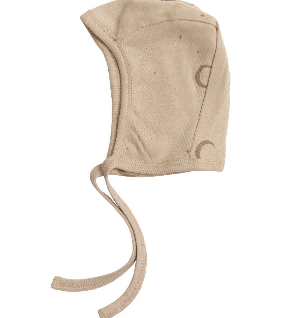 Skøn That’s Mine babyhjem i beige med et allover print af halvmåner i en mørkere nuance.