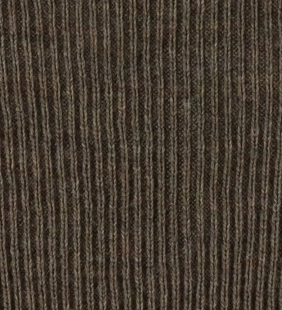 Blød Joha babyhjelm i mørkebrun med ribstruktur. Babyhjelmen har en rund hovedform og en bred ribkant omkring ansigtsåbningen, der sikrer en behagelig pasform. Den bindes under hagen. Babyhjelmen er fremstillet af merinould.