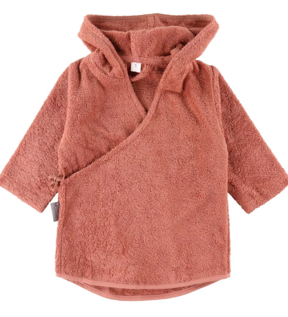 Dejlig Nørgaard Madsens badekåbe i støvet rød.