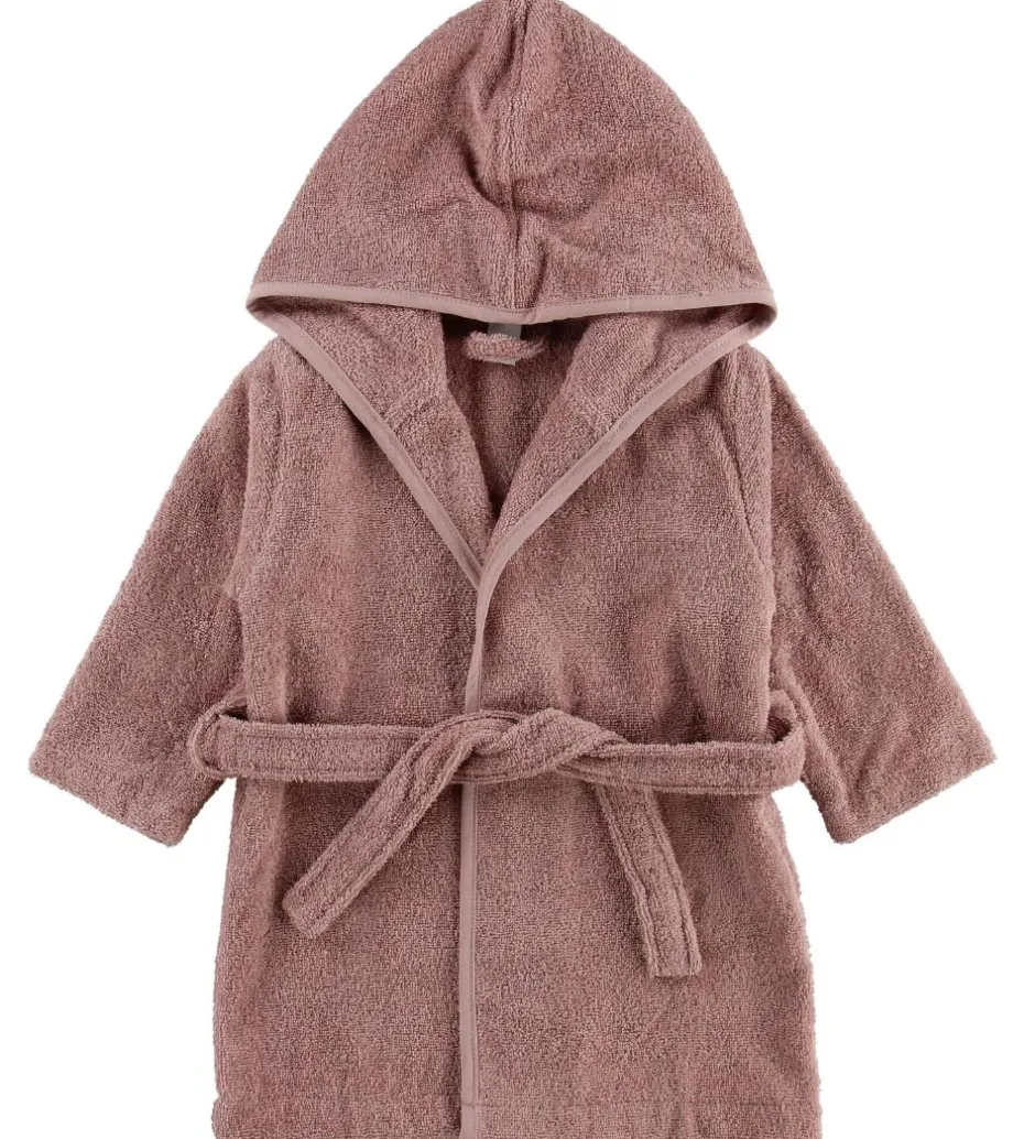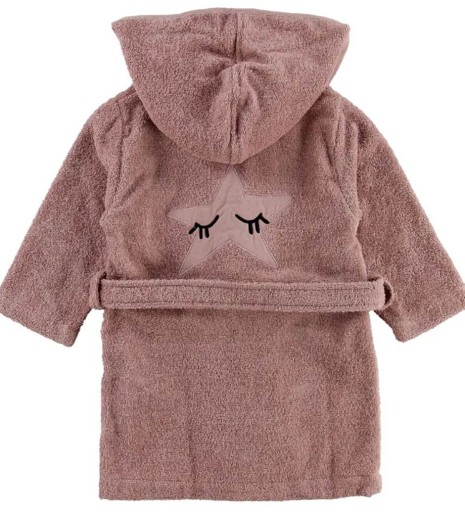 Sød Nørgaard Madsen badekåbe i rosa frotté med en fastsyet hætte og en dekorativ stjerne på ryggen.