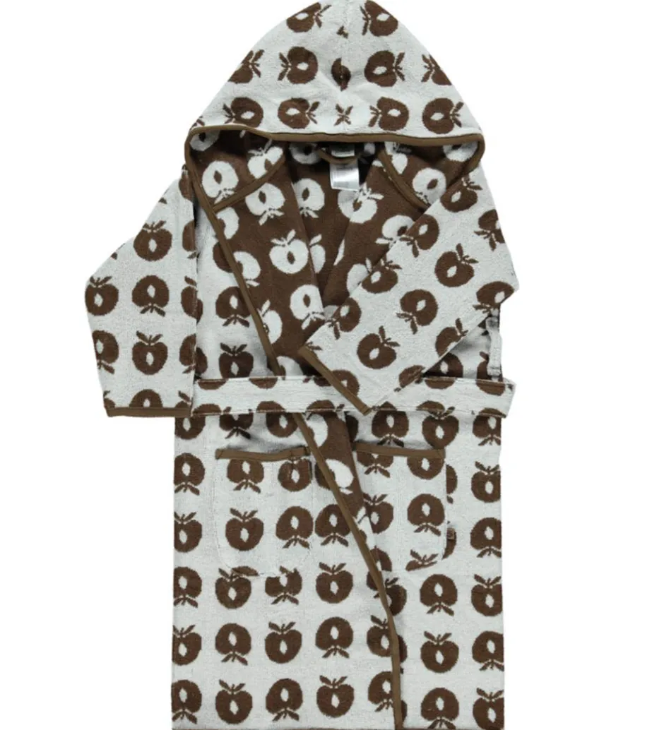 Smart Småfolk badekåbe i hvid frotté med et allover print af de klassiske Småfolk æbler i brun.