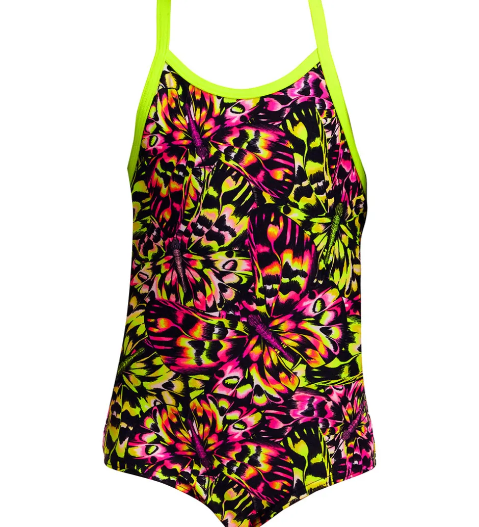 Funkita badedragten har smalle skulderstropper, som mødes på ryggen. I alle åbninger er der elastiske kanter, som sikrer en behagelig pasform. Badedragten er fremstillet i en strækbar kvalitet.