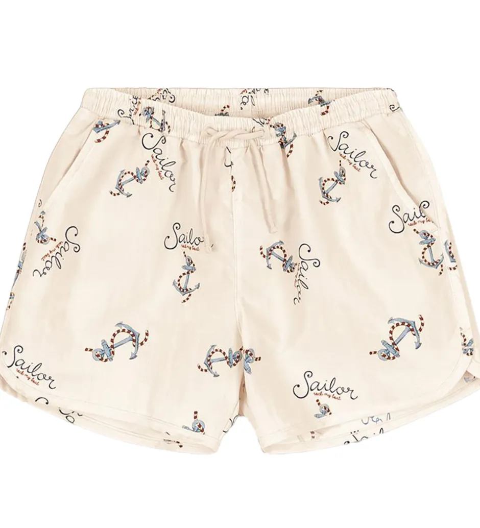 Elegante Konges Sløjd badeshorts i en lys sandfarve med et charmerende maritimt print.