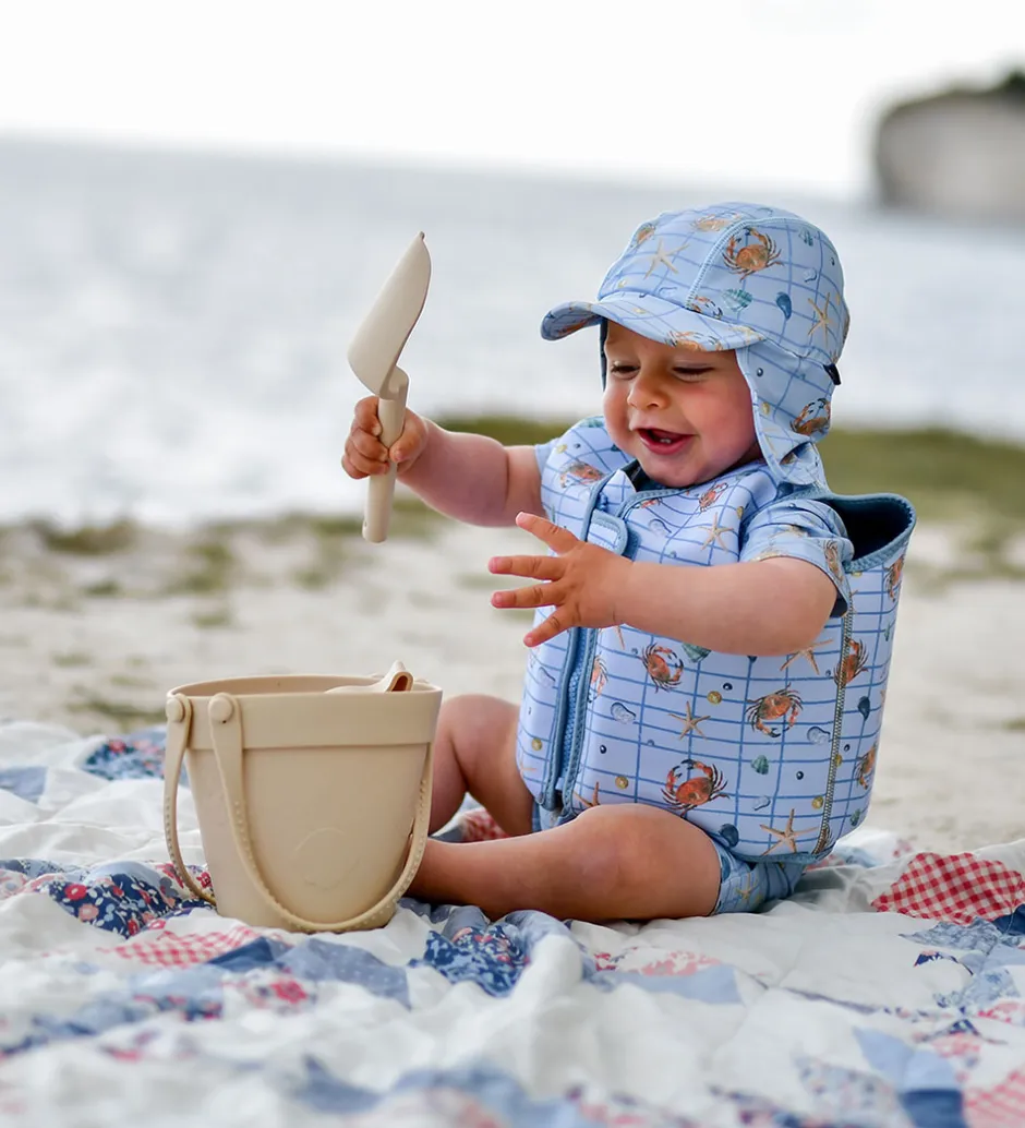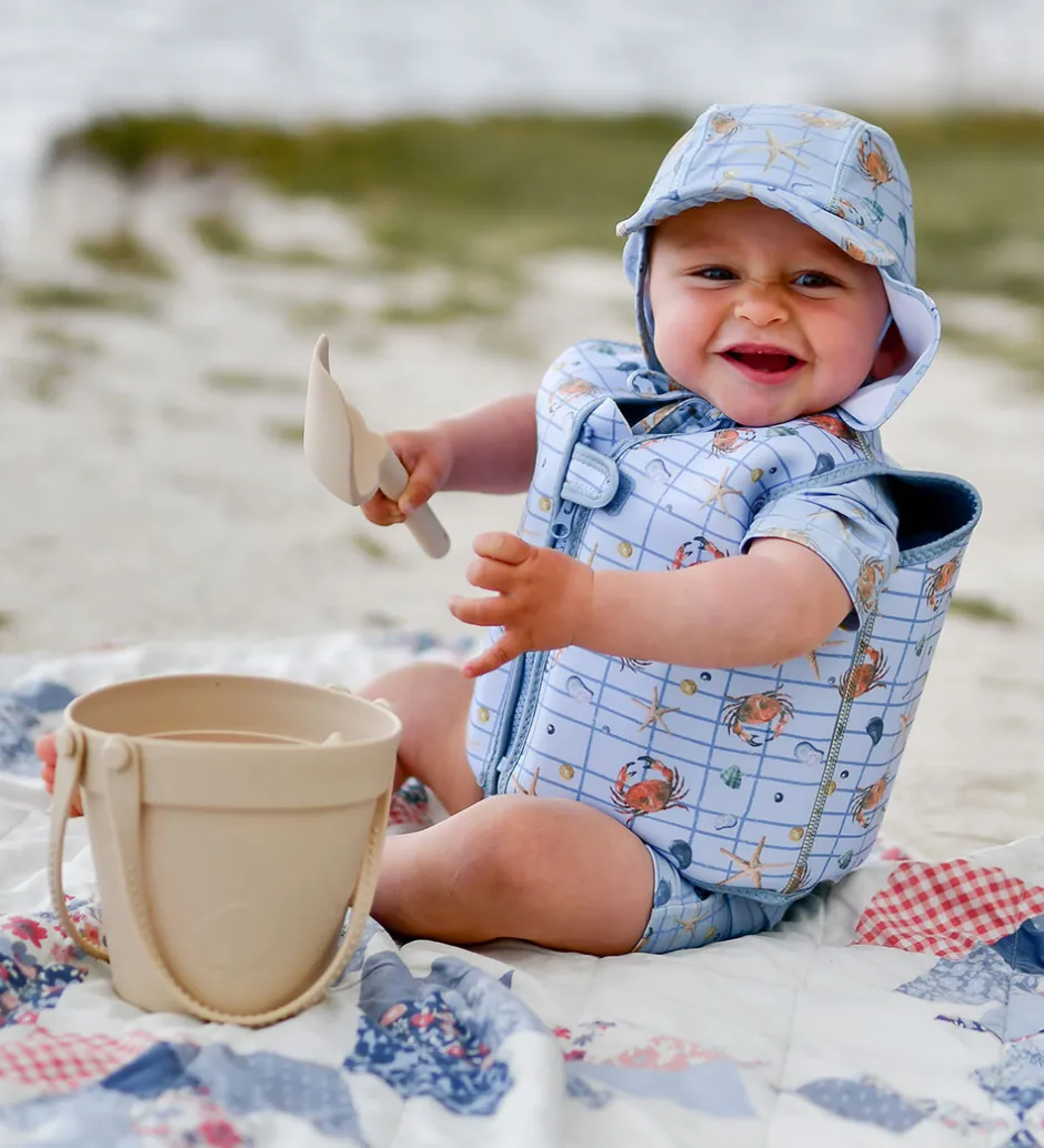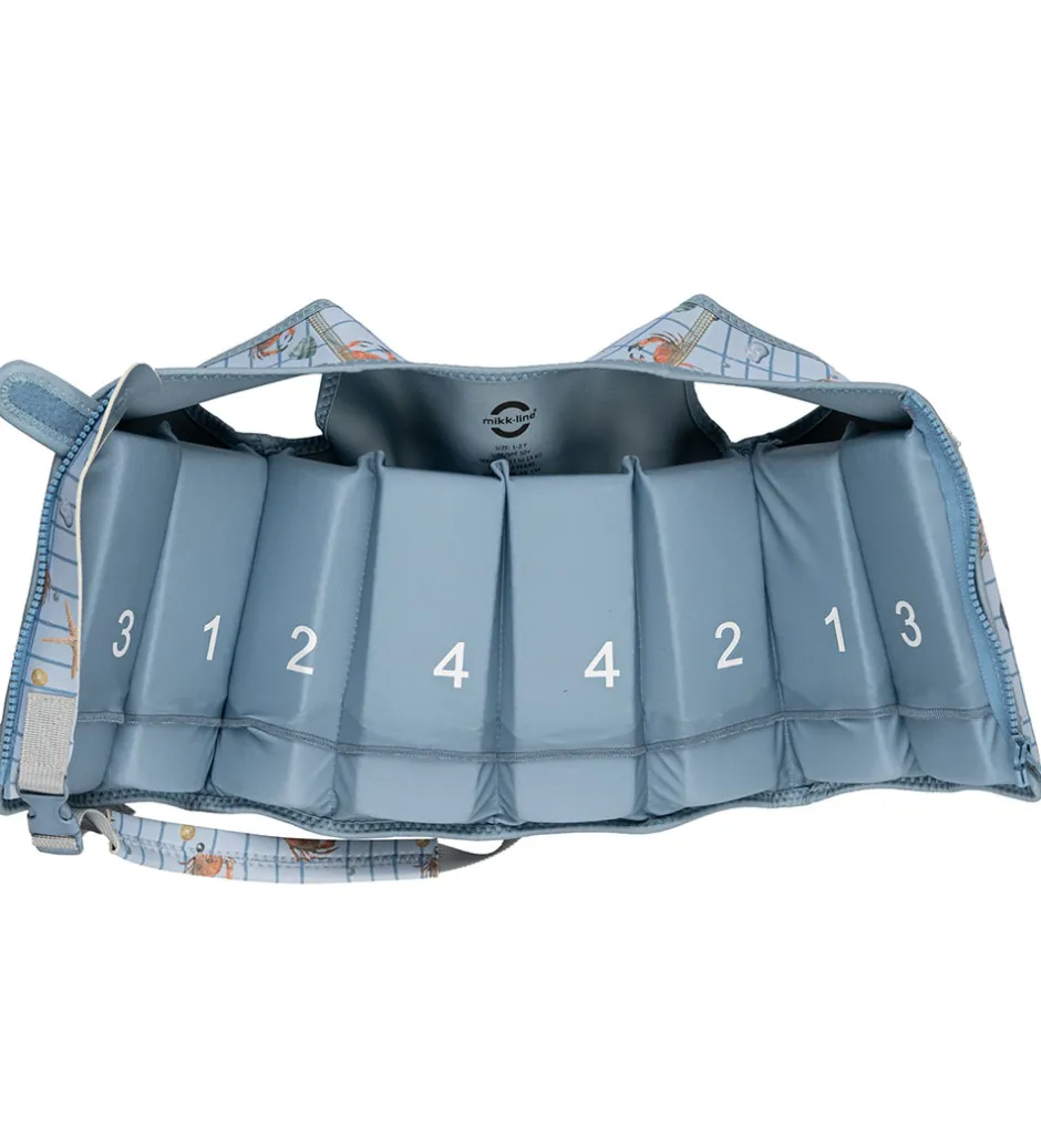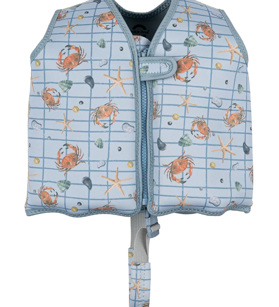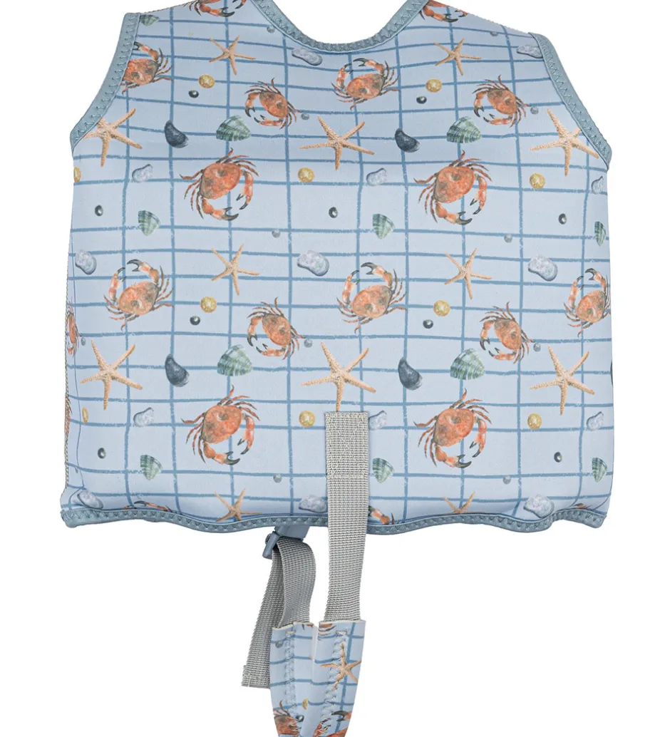 Praktisk Mikk-Line svømmevest i en lys blå nuance med et sødt krabbe- og søstjerneprint samt skaldyrsmotiv.