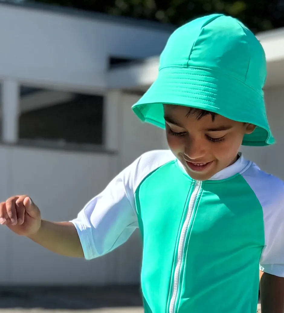 Fin Petit Crabe badehat i en frisk grøn nuance.