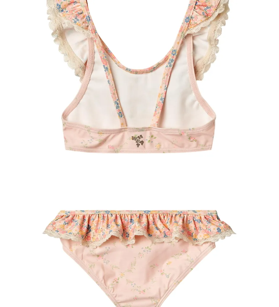 Elegant Wheat bikini i rosa med et delikat blomsterprint i gule, blå og grønne nuancer.