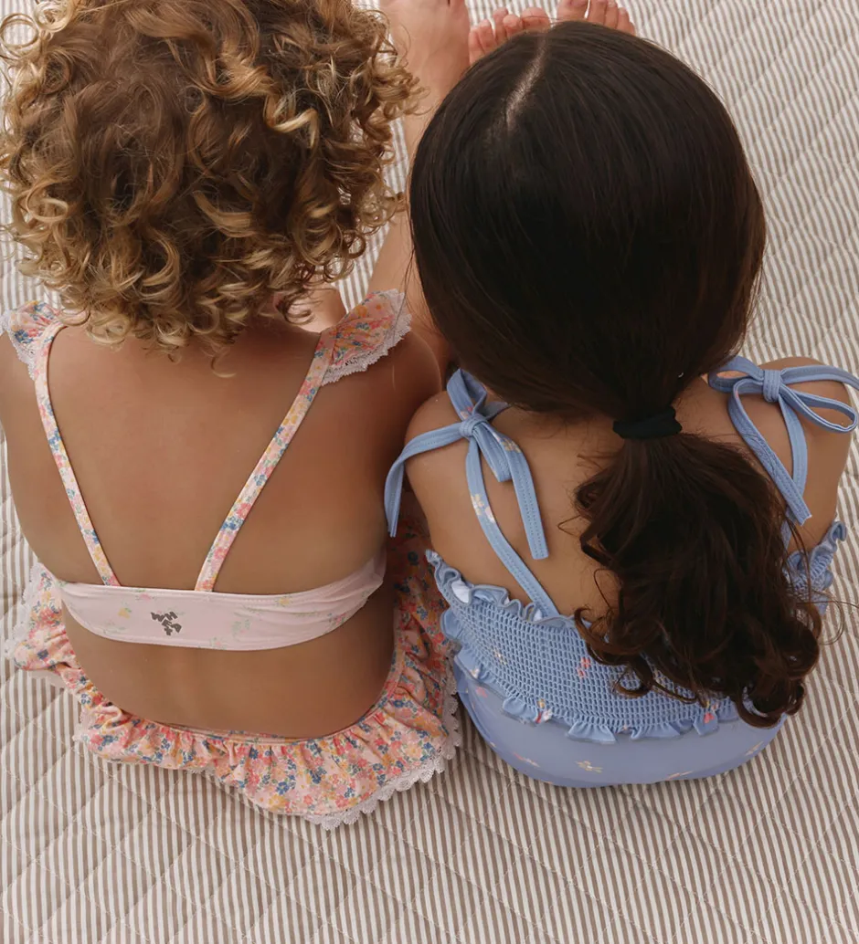 Wheat bikinioverdelen har smalle stropper og en dekorativ flæsekant ved halsudskæringen. Bikinitrusserne har også en flæsekant i taljen og elastik, som sikrer god pasform.