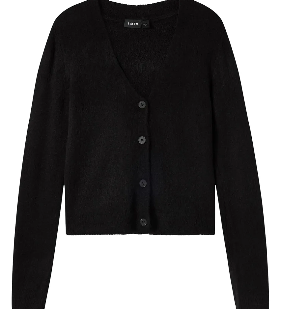 Klassisk LMTD cardigan i sort med lange ærmer. LMTD cardiganen har en knaplukning foran og en V-udskæring, der giver et stilrent udtryk. Cardiganen er i en blød, strikket kvalitet. Ribkanter på ærmerne og forneden tilføjer en fin detalje til cardiganens design.