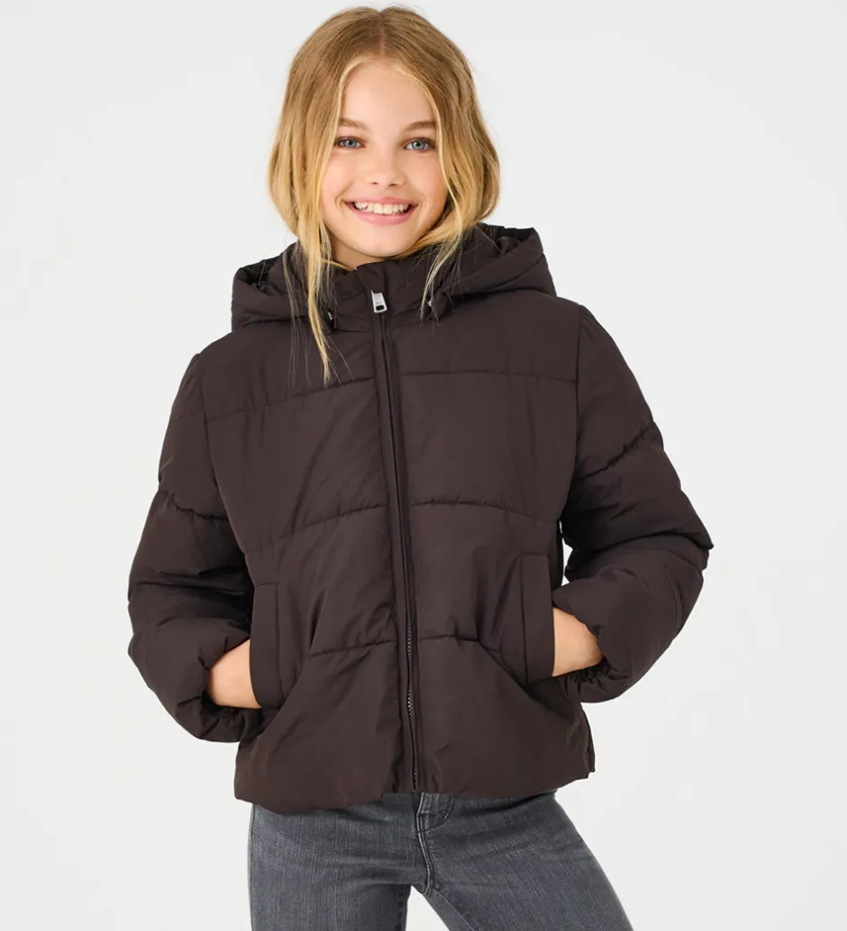 Flot Kids Only dynejakke i kraftig mørkebrun.
