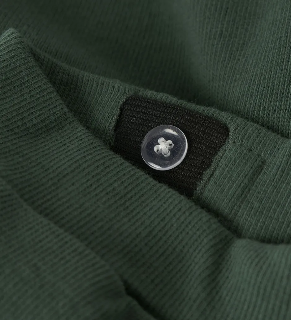 Behagelige sweatpants fra Name It i en dyb, grøn nuance. Sweatpantsene har en elastikkant i livet, som kan justeres med knapper indvendigt. Øverst er der en lomme i hver side og i benåbningerne er der ribkanter. Sweatpantsene er fremstillet i en meget blød blanding af økologisk bomuld, polyester og viskose.