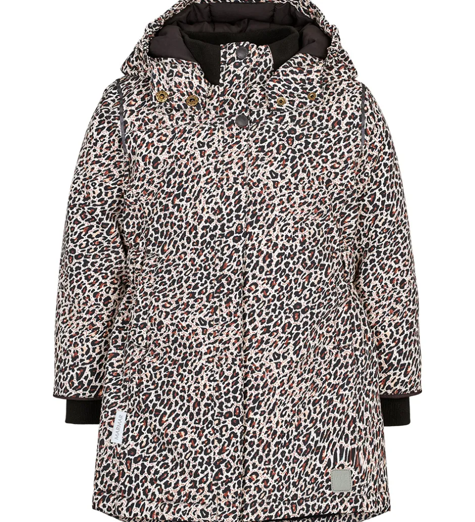 Flot MarMar vinterjakke med leopardprint i beige, brun og sort. Vinterjakken har praktiske refleksdetaljer.