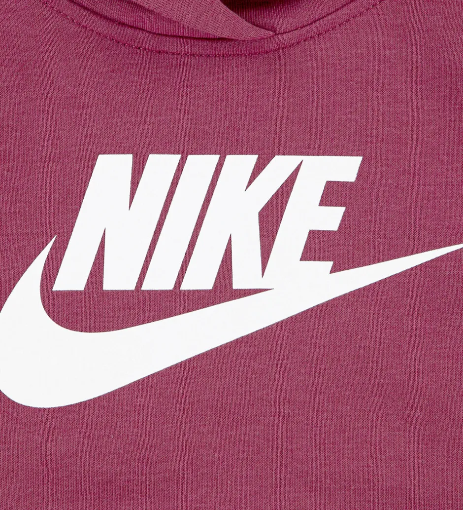 Nike hættetrøjen har lange ærmer, en blød hætte og en rummelig kængurulomme foran. Ribkanter ved ærmerne giver en god pasform. Sweatpantsene fra Nike har en elastisk talje, der sikrer en behagelig pasform, og ribkanter ved anklerne. Sweatsættet har blødt, børstet bomuld indvendigt.