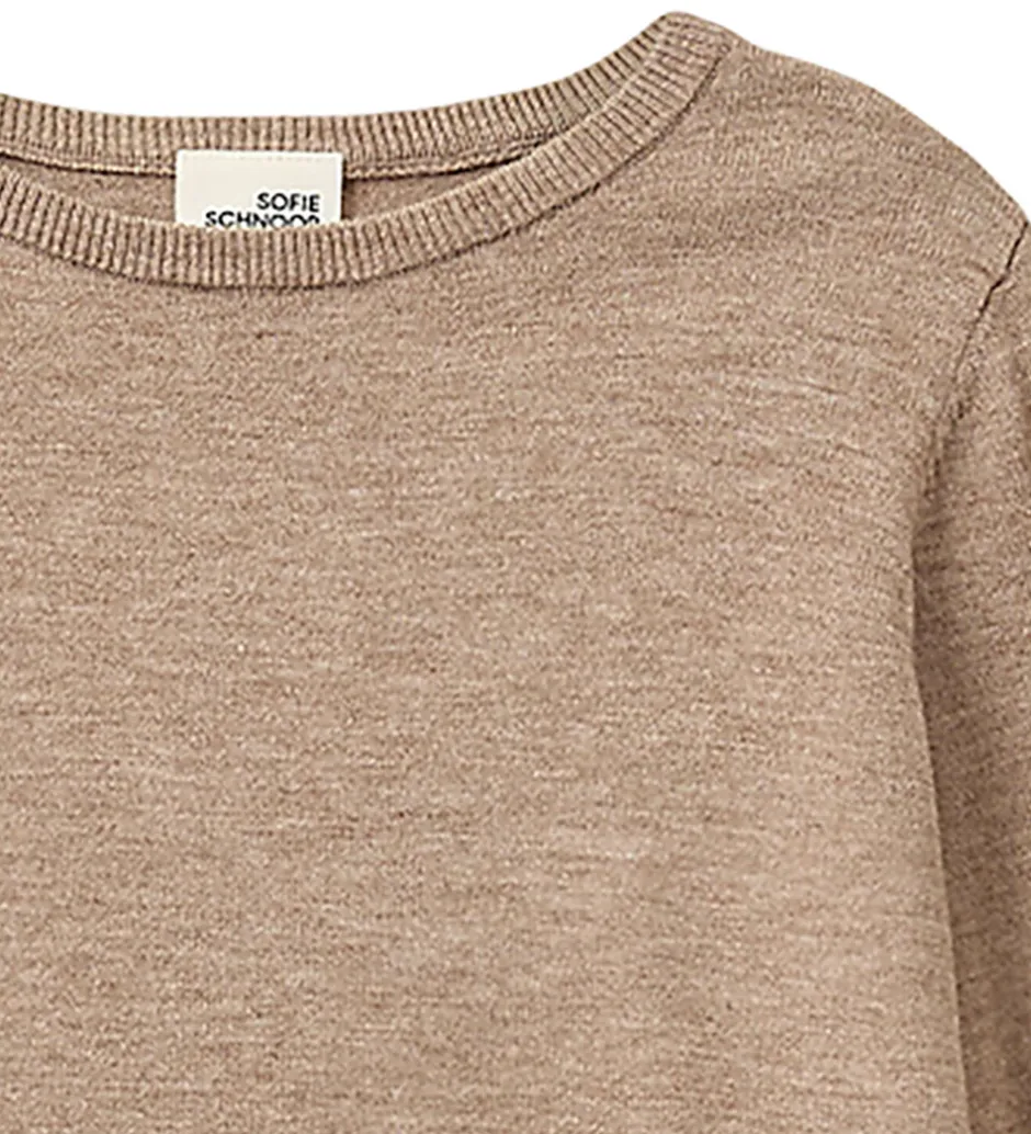 Elegant Sofie Schnoor bluse med en meleret, lysebrun nuance. Blusen har en rund halsudskæring, der gør den alsidig. Den raffinerede, strikkede struktur tilføjer et klassisk udtryk til designet. Sofie Schnoors bluse er en stilfuld tilføjelse til enhver garderobe.