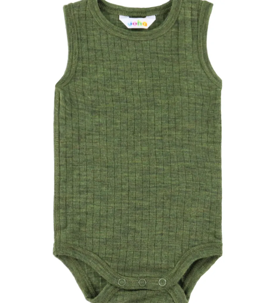 Praktisk Joha body uden ærmer i en flot, olivengrøn nuance.