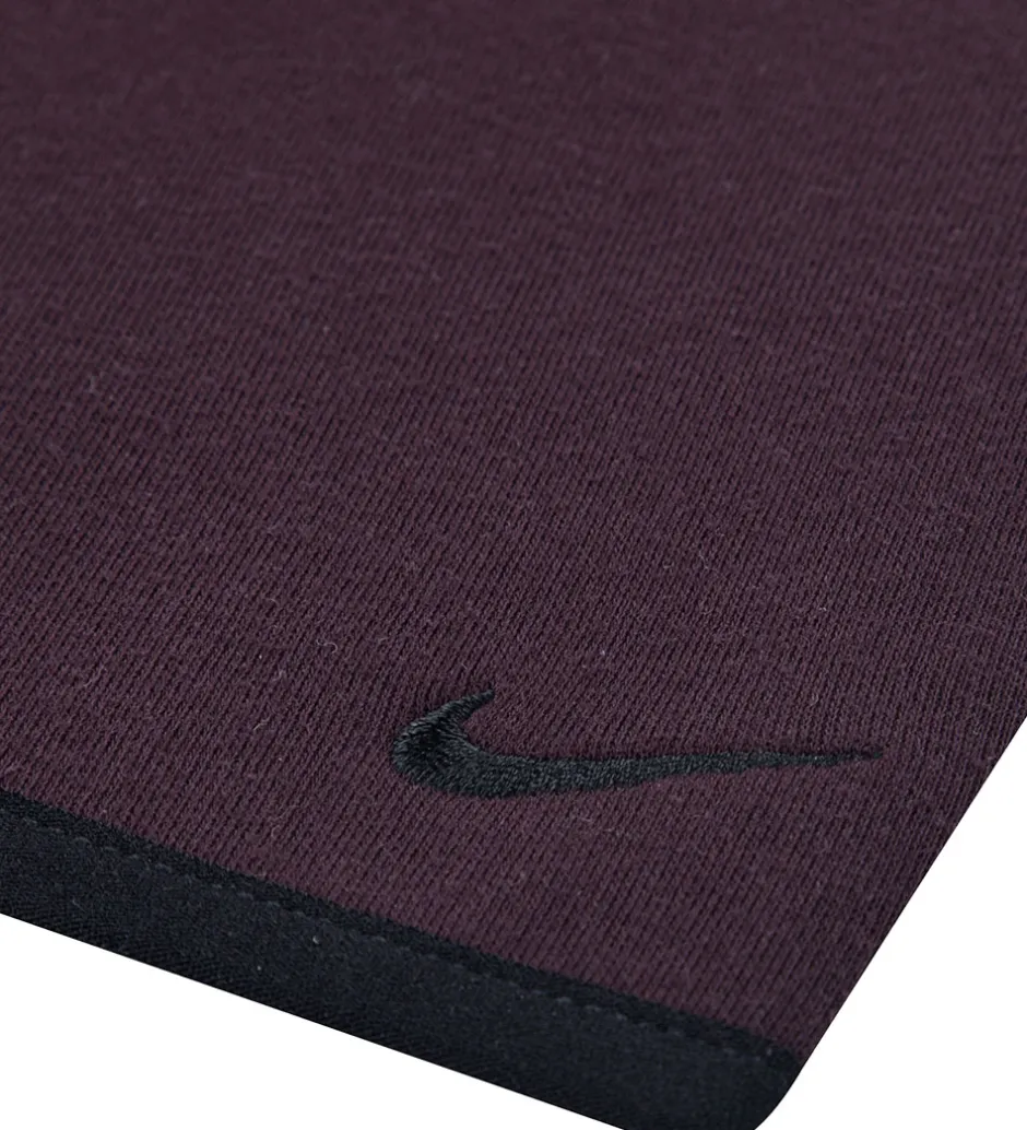 Stilfuldt Nike sæt i dybe bordeaux nuancer, med fint logoprint på både cardigan og bukser. Sættet er fremstillet i kraftigt, tætvævet materiale. Cardiganen har hætte og lange ærmer, hvilket tilføjer ekstra komfort og stil til sættet. Den åbnes med en gennemgående lynlås. Bukserne har en bred elastisk talje, åbne lommer i siderne og en rummelig lomme bagpå, som lukkes med lynlås.