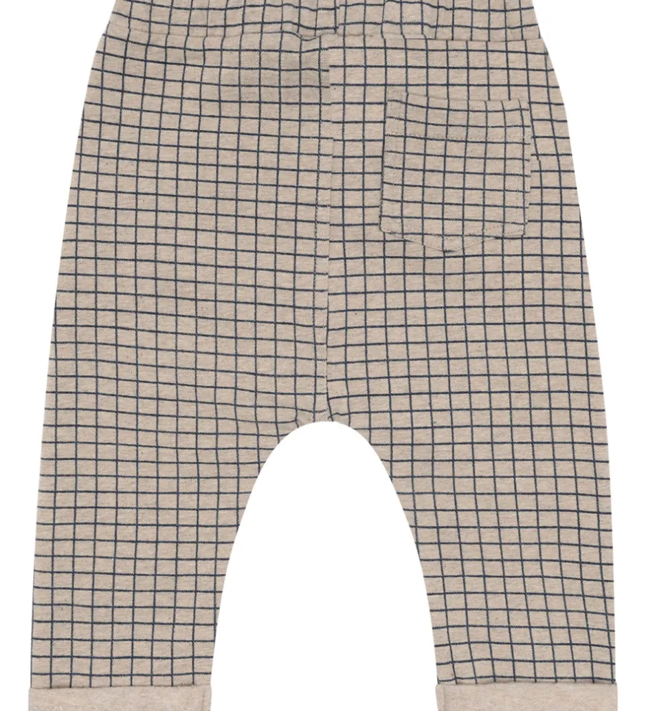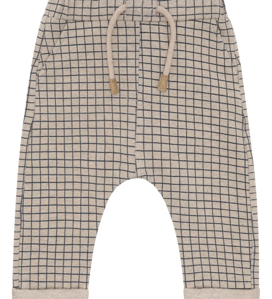 Flotte Hust and Claire sweatpants i beige med et navy, ternet mønster.