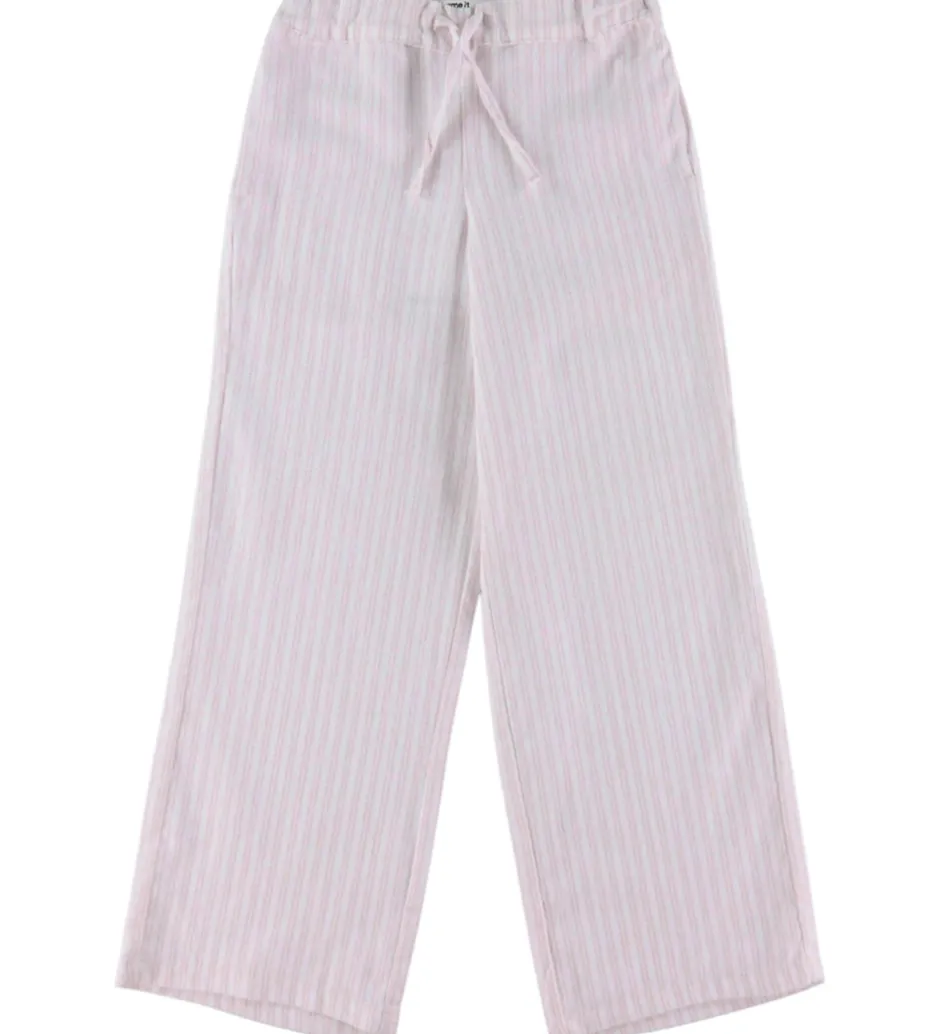 Stilfulde bukser fra Name It i en lyserosa nuance med et diskret lodret stribemønster i hvid.