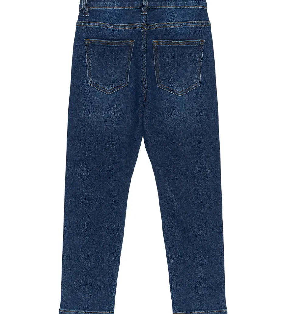 Stilfulde The New jeans i mørkeblå denim med et let vasket look. The New jeansene har en elastisk talje, som kan justeres med knapper indvendigt. De lukkes fortil med en hægte og lynlås. Jeansene har bæltestropper og lommer på for- og bagside. De har en klassisk pasform.