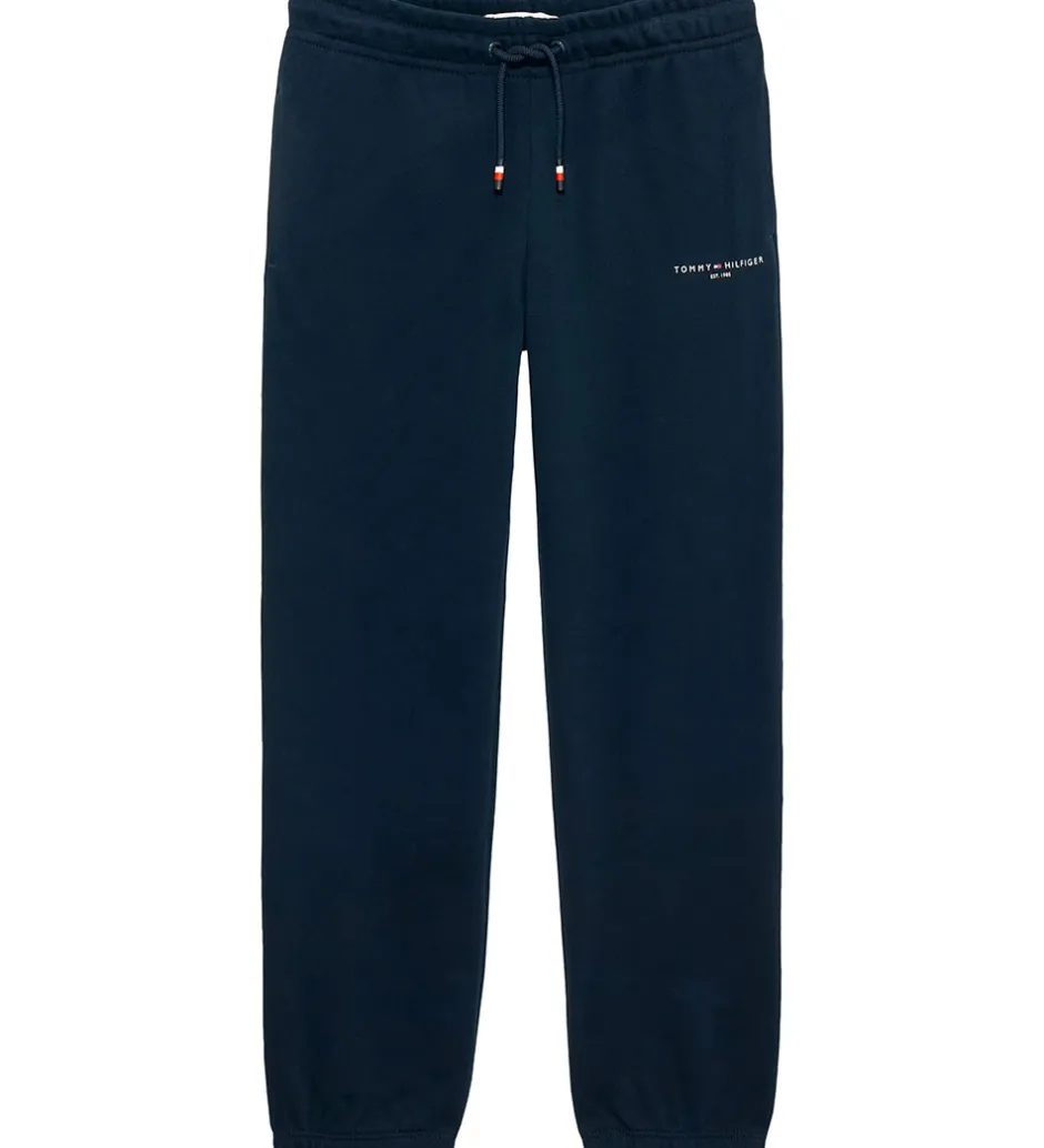 Stilrene Tommy Hilfiger sweatpants i en klassisk, mørkeblå farve med et diskret logo på låret. Sweatpantsene har en praktisk elastikkant i livet samt snøre for justerbar pasform, og ribkanter ved anklerne sikrer et godt fit. Tommy Hilfiger formår at forene funktionalitet med et tidløst design.