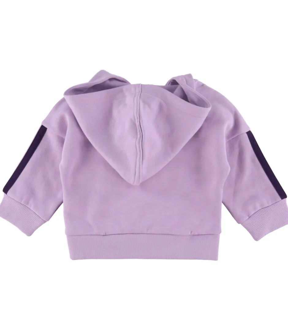 Flot adidas Performance sweatsæt, der består af en hættetrøje og et par sweatpants i en blød lilla nuance med mørkelilla detaljer.