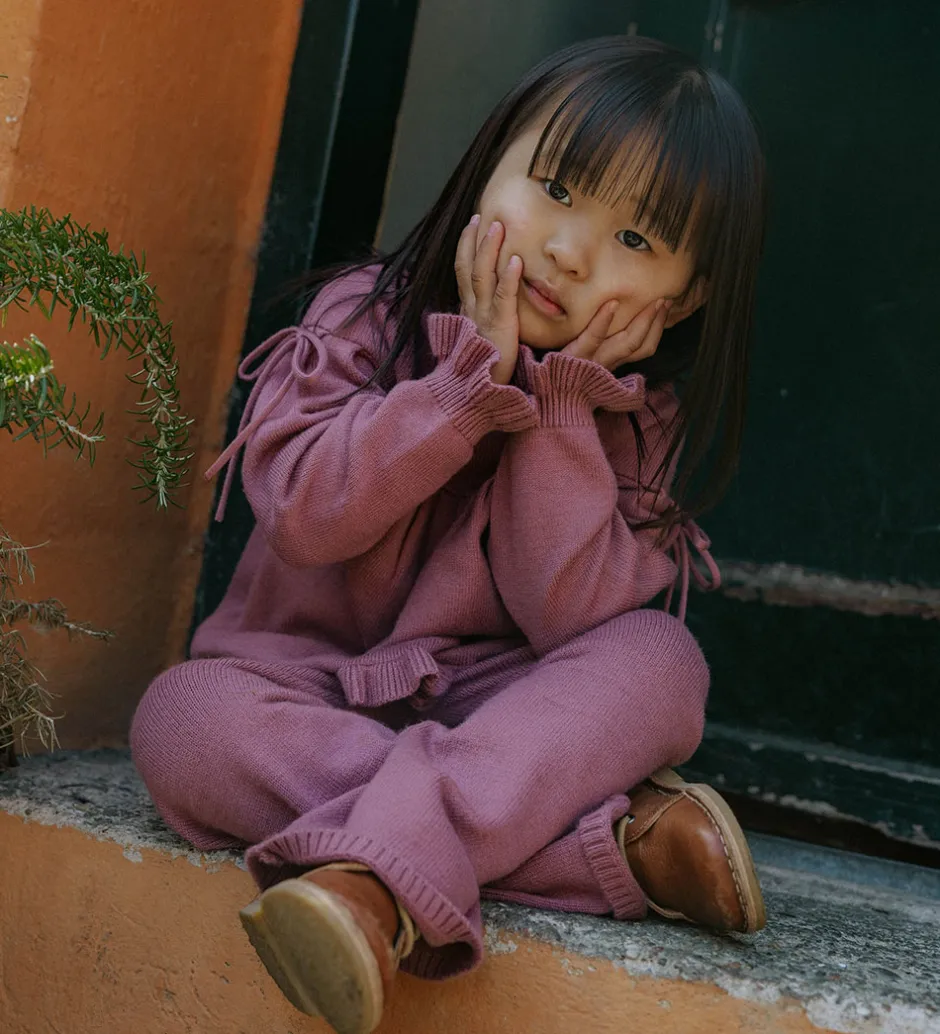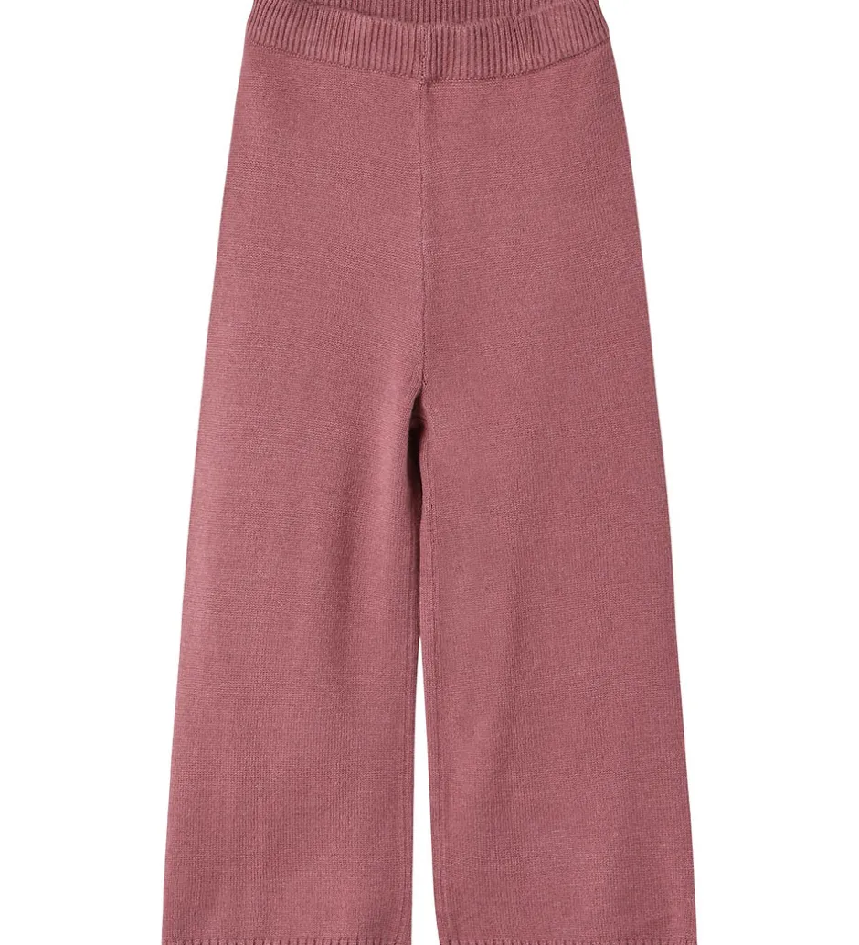 Fine bukser fra Fliink i en støvet rosa farve med strikket struktur. Fliink bukserne har en afslappet pasform med brede ben. I taljen er der en elastisk ribkant, som giver en god pasform. I benåbningerne er der smalle ribkanter. Bukserne er fremstillet i en meget blød kvalitet.
