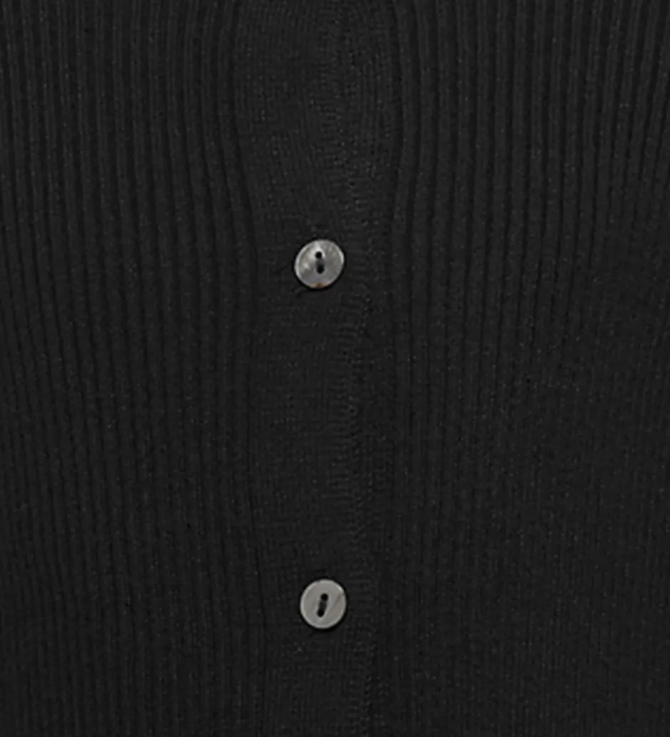 Stilren Kids Only cardigan i sort med lange ærmer og en elegant ribbet struktur. Kids Only cardiganen kommer med en enkel knaplukning foran og en rund halsudskæring, som giver et klassisk look.