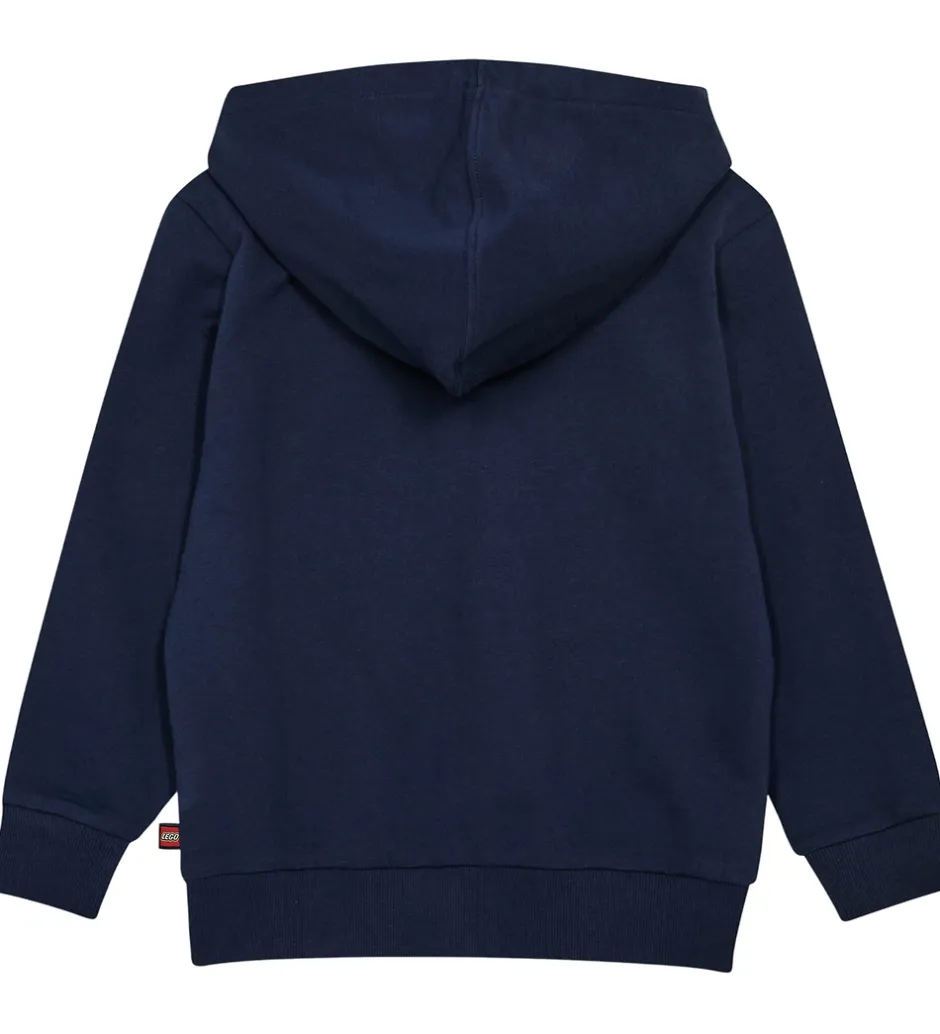 Cool cardigan med hætte fra LEGO® Wear Ninjago i mørkeblå og med et sejt print fortil med de ikoniske LEGO® Ninjago-figurer. Cardiganen er med blød, børstet bomuld indvendigt.