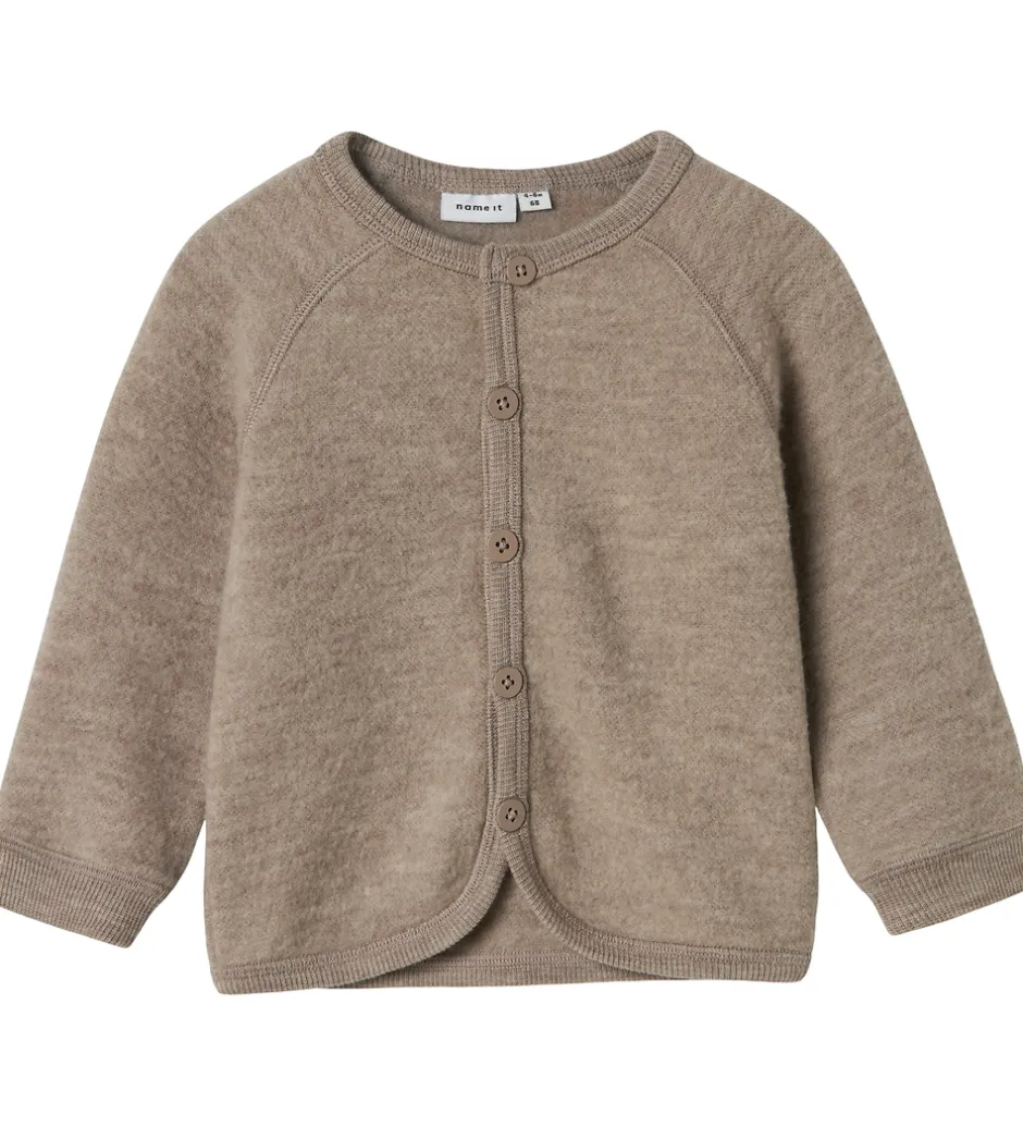 Charmerende Name It cardigan i en mørkebeige nuance med lange ærmer.