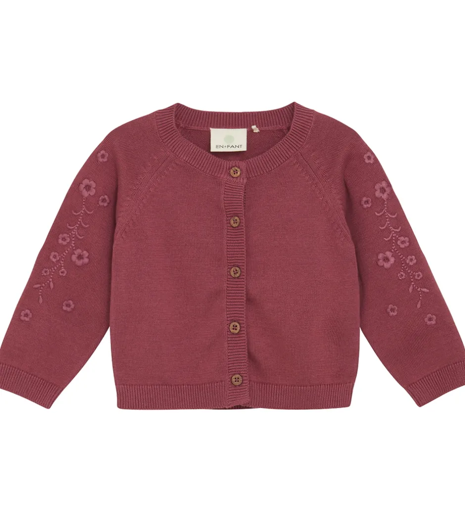 Charmerende En Fant cardigan i en mørkelilla nuance med lange ærmer.