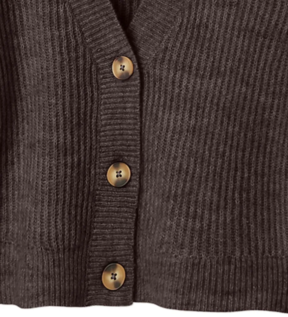 Stilren Name It cardigan i en klassisk, mørkebrun nuance med lange ærmer og en flot ribstrikketstruktur. Cardiganen fra Name It har en v-hals og knapper i en kontrastfyldt trælook, der fuldender designet.