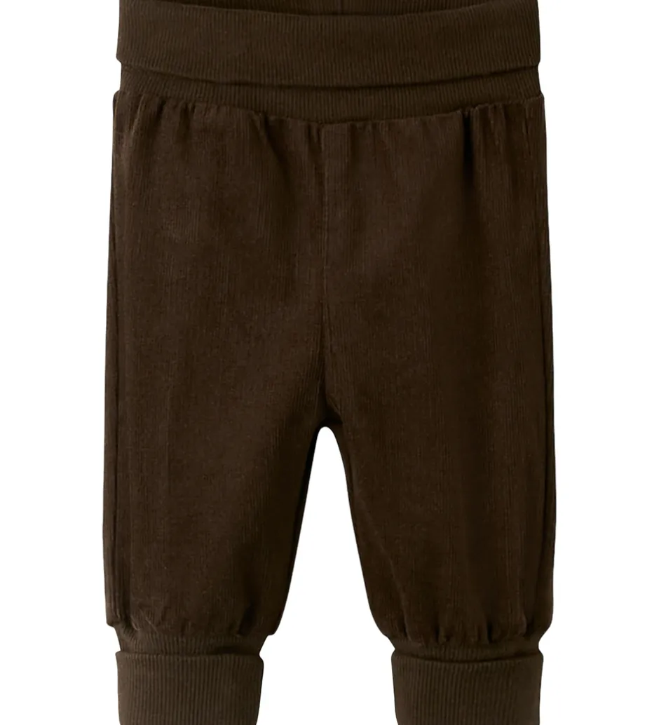 Seje fløjlsbukser fra Name It i mørkebrun. Name It fløjlsbukserne har en bred elastisk kant ved livet og ved anklerne, som sikrer en behagelig pasform.