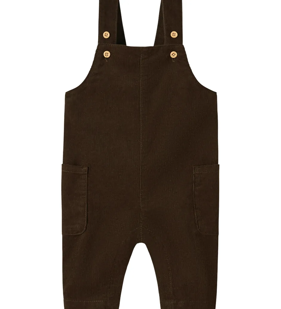 Name It smækbukserne er designet med brede skulderstropper, der kan justeres med knapper foran. Smækbukserne har to praktiske lommer på siderne og trykknapper mellem benene.