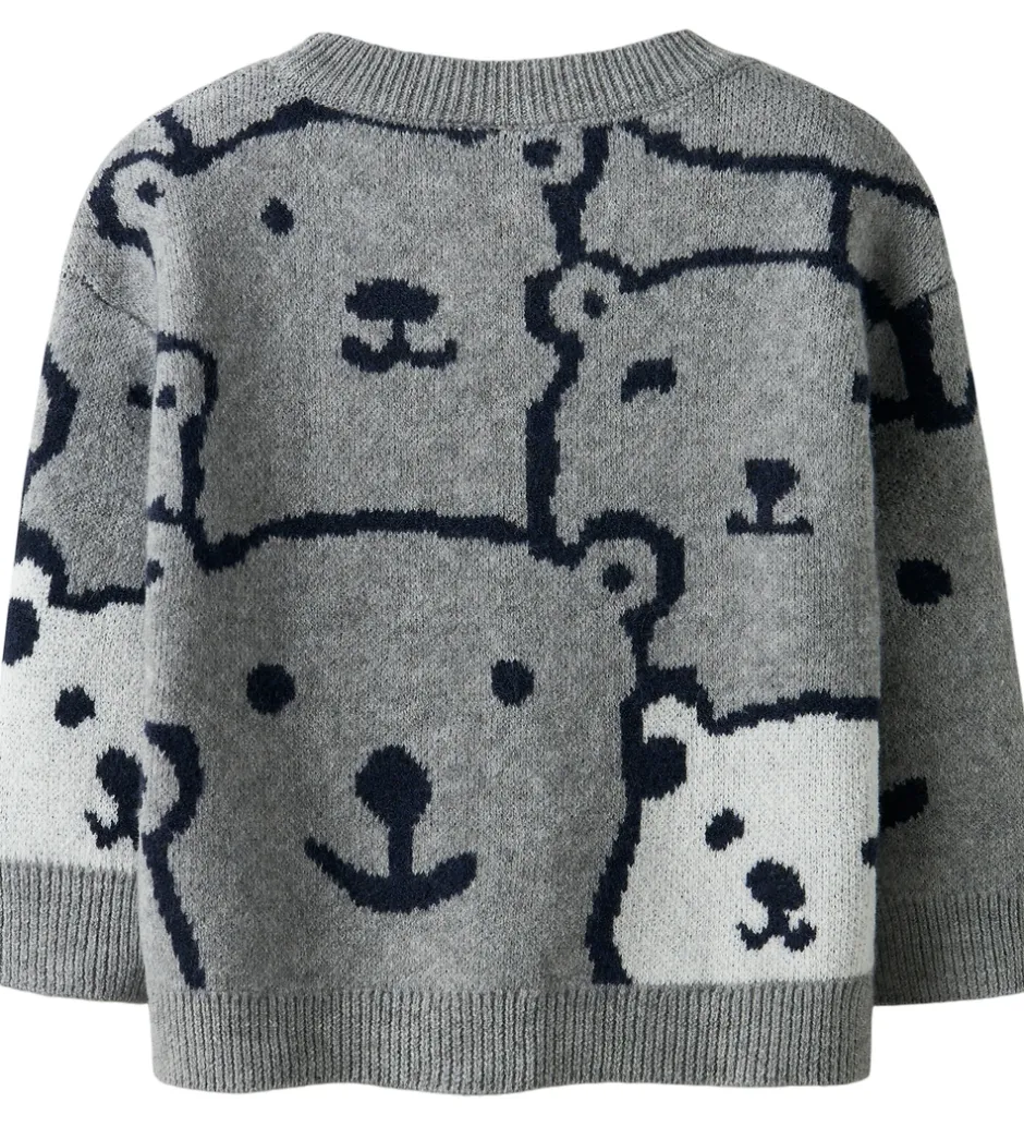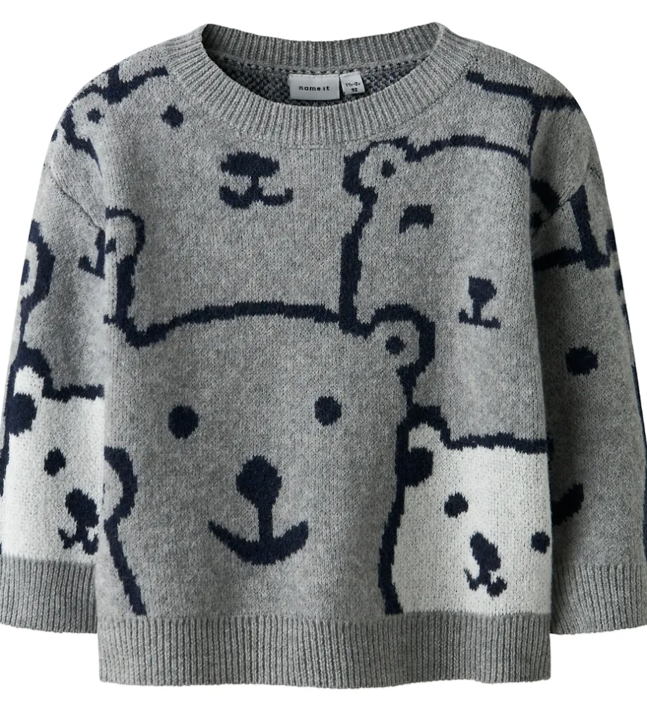 Charmerende Name It bluse med lange ærmer i en gråmeleret nuance, dekoreret med et mønster af bjørneansigter. Blusen har en rund halsudskæring og ribkanter ved håndleddene samt forneden. Den simple og søde stil gør denne Name It bluse til en favorit for mange.