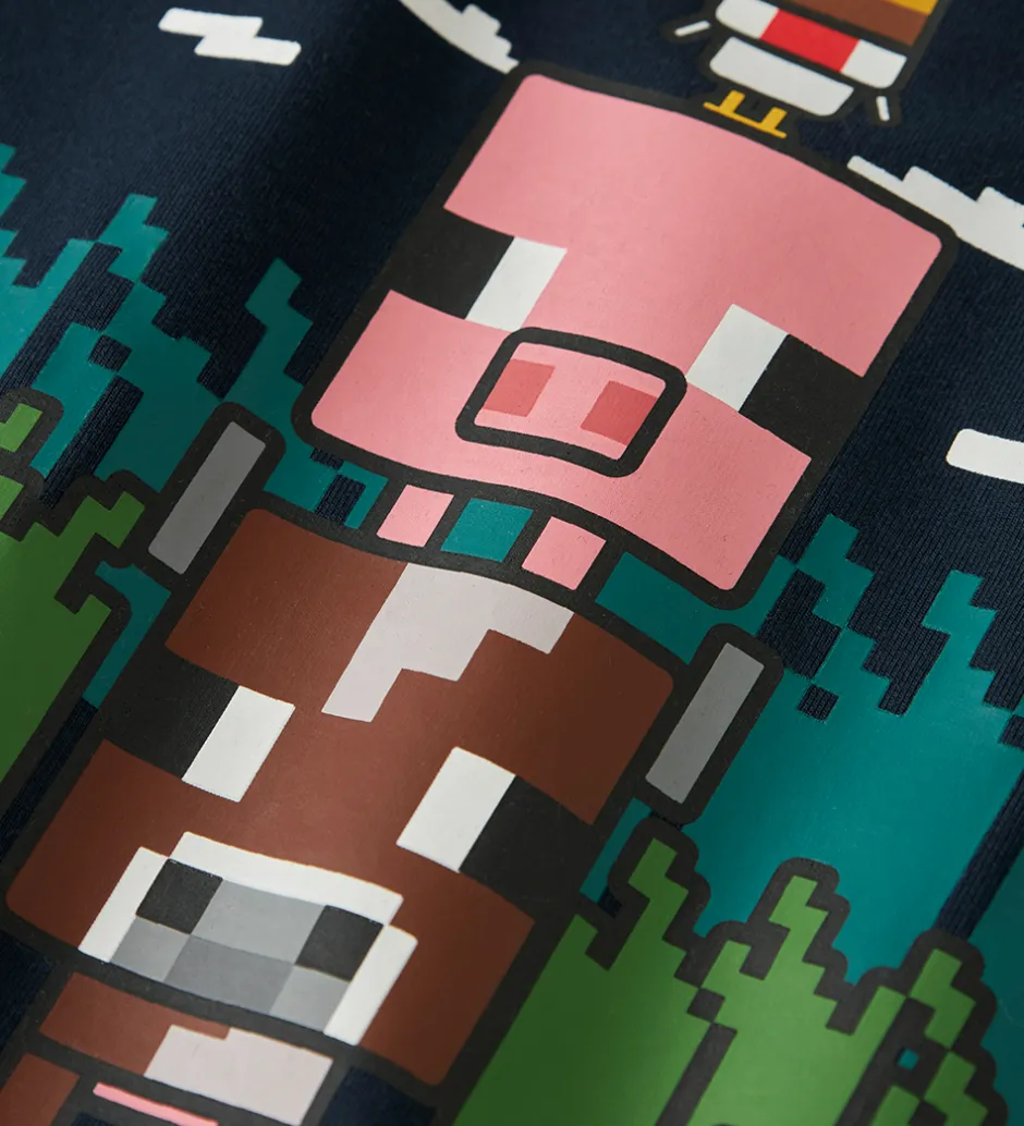 Stilfuld Name It sweatshirt i navyblå med et farverigt Minecraft-print. Name It sweatshirten har lange ærmer og en rund halsudskæring. Indvendigt er der blødt, børstet bomuld.