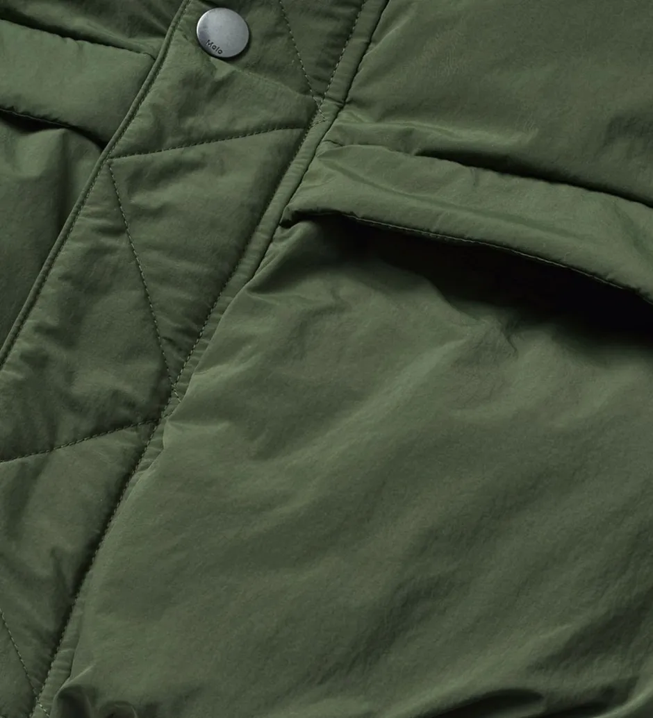 Fin Molo dynejakke i mørkegrøn med vandrette syninger.