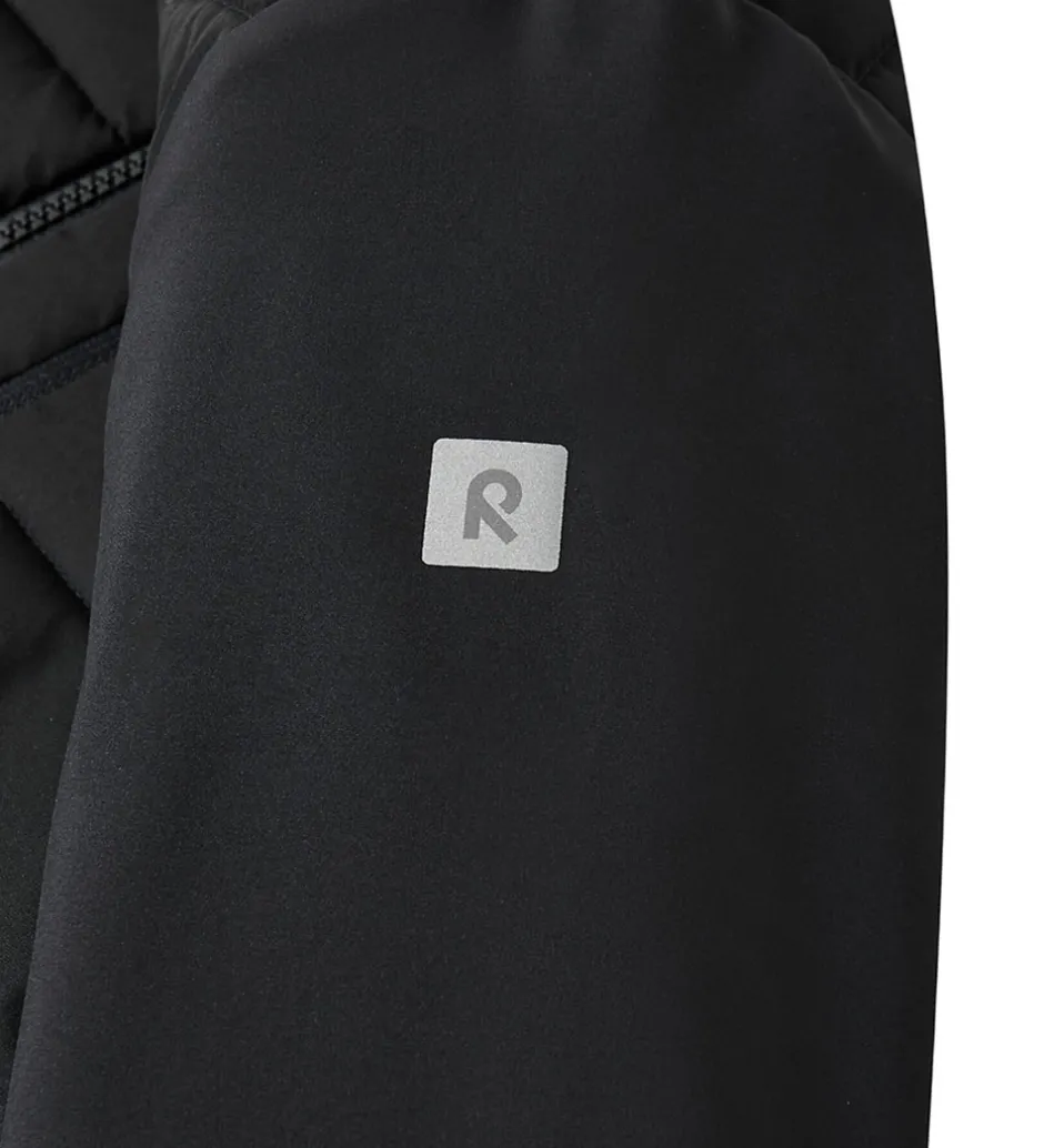 Reima dynejakken har en aftagelig hætte, som sidder fast med trykknapper, og den har smalle, elastiske kanter. Dynejakken lukkes med en lynlås med hagebeskytter, og i venstre side har den en brystlomme, som lukkes med en lodret lynlås.