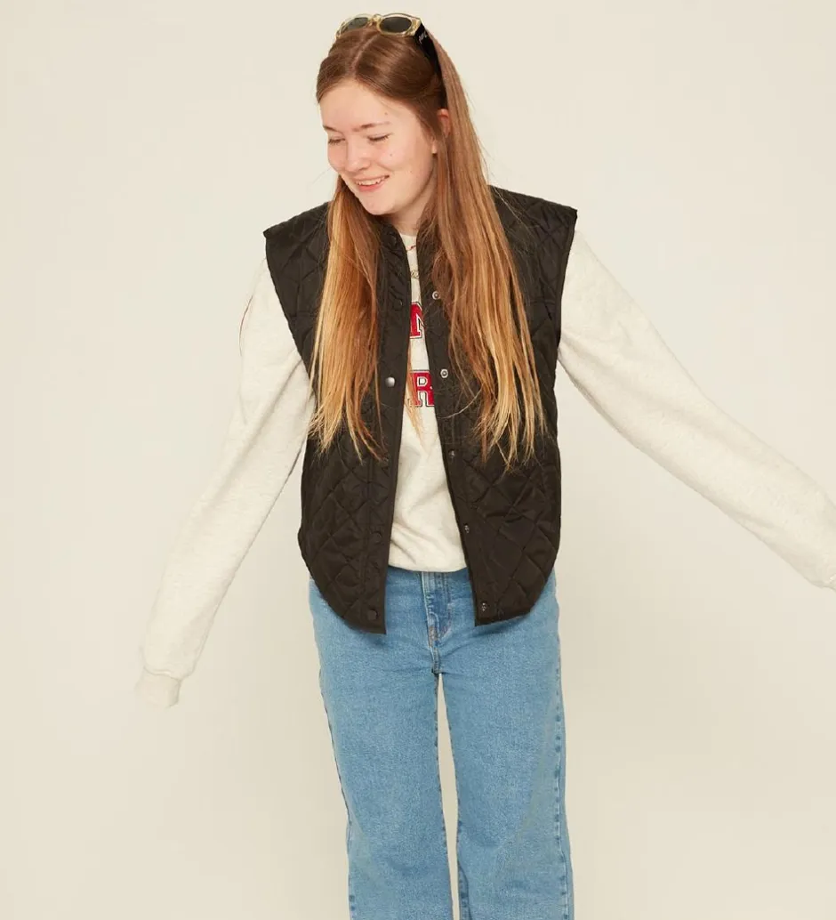 Skøn Designers Remix dynevest jakke i ensartet sort med en quiltet struktur.