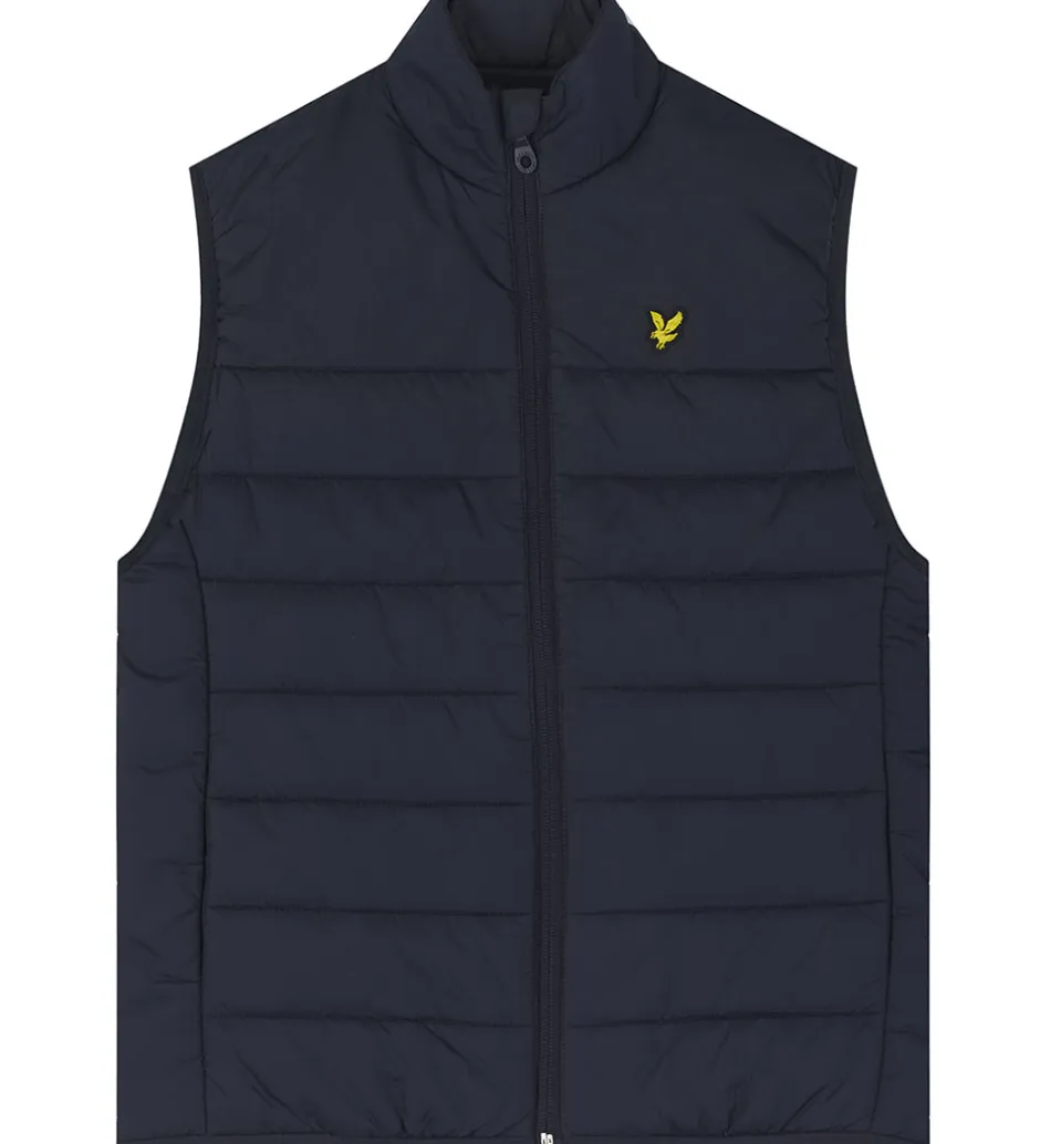 Flot Lyle & Scott dynevest i navy i en glatvævet kvalitet og med et lille, gult logo fortil.