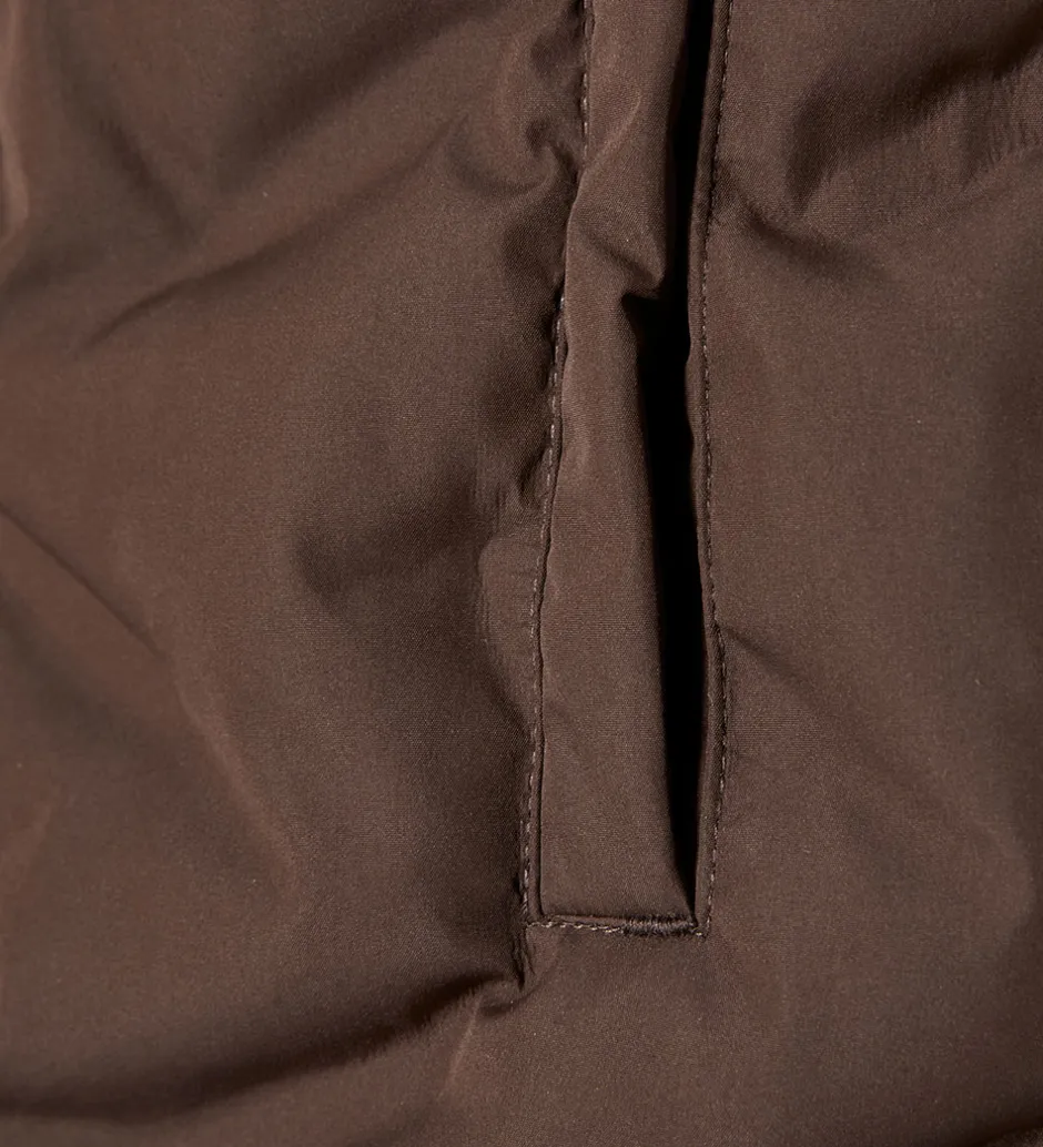 Minymo dynevesten har en høj hals, og den lukkes med en lynlås med hagebeskytter og dobbelt vindstolpe, som lukkes på ydersiden med skjulte trykknapper. I siderne er der praktiske lommer.