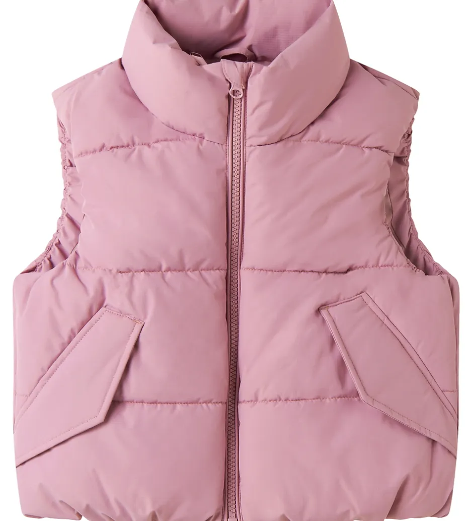 Lækker Name It dynevest i rosa og med vandrette syninger.