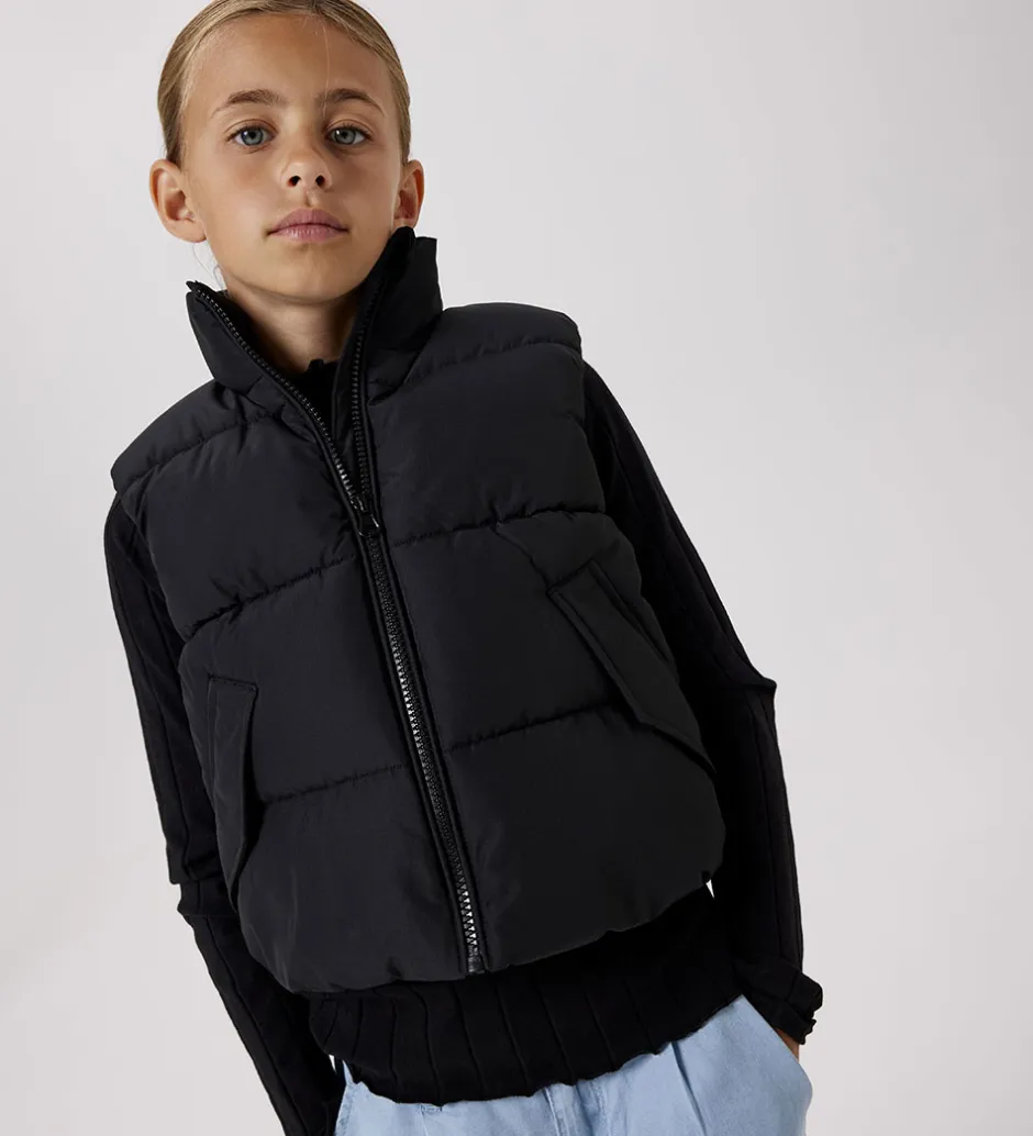 Fin Name It dynevest i ensfarvet sort og med vandrette syninger.