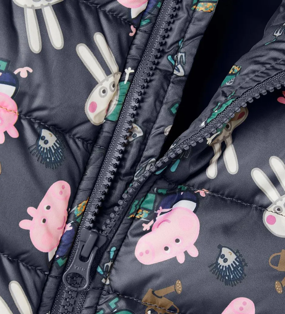 Fed Name It dynevest i navy, med Gurli Gris og hendes ven over det hele.