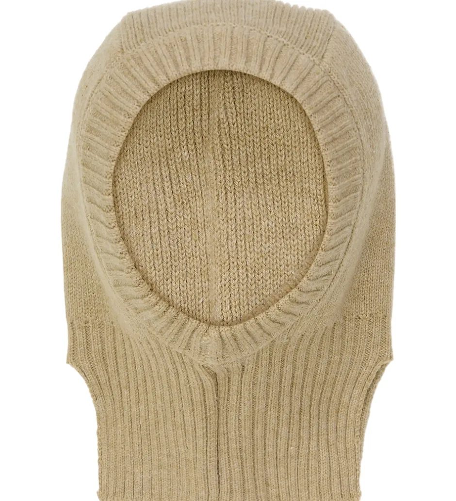Lækker CeLaVi elefanthue i beige i en strikket kvalitet med ribstruktur, og den er lavet af blødt og lækkert merinould.