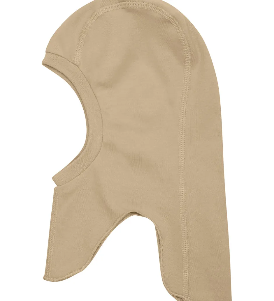 Lækker Fixoni elefanthue i ensfarvet lysebrun.