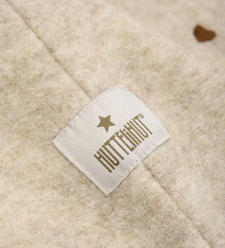 Huttelihut elefanthuen har en yderside af merinould og polyester samt en inderside af blødt velour.