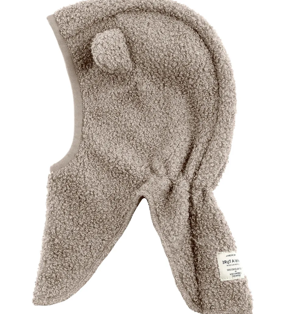 Lækker Mini A Ture elefanthue i lysebrunt teddyfleece.