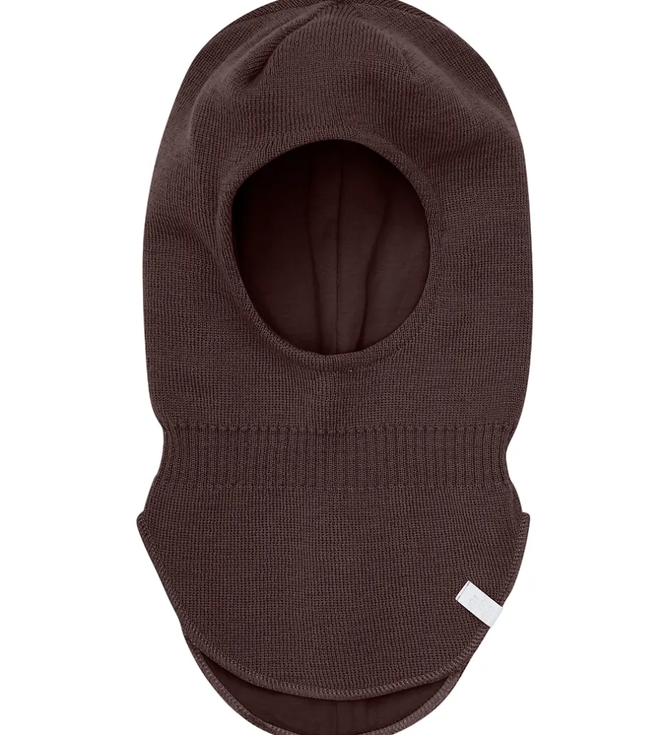Minymo elefanthuen har en rund hovedform, og den har et praktisk splitdesign i bunden med en smal kant. Elefanthuen har en smal ribkant i ansigtsåbningen samt en bred ribkant omkring halsen.