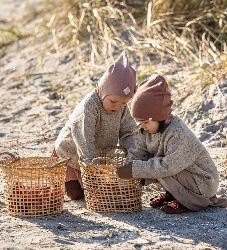 Racing Kids elefanthuen har en spids hovedform, og i venstre side sidder der en dekorativ sløjfe. Elefanthuen består af to lag, hvoraf det udvendige er i en lækker uldblanding, mens det indvendige er lavet af blødt bomuldsjersey. Ved ørerne er der praktiske vindstop, så ørerne er godt beskyttet mod vinden.