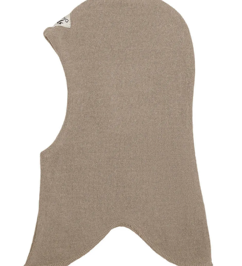 Lækker Racing Kids elefanthue i lysebrun i en strikket kvalitet.